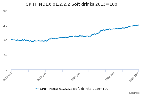 Download this time seriesCPIH INDEX 01.2.2.2 Soft drinks 2015=100