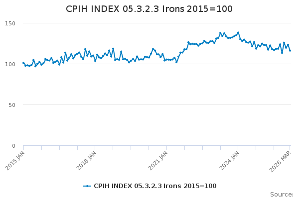 Download this time seriesCPIH INDEX 05.3.2.3 Irons 2015=100