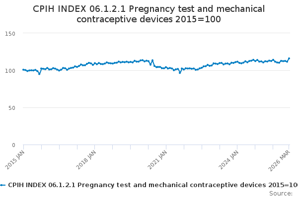 Download this time seriesCPIH INDEX 06.1.2.1 Pregnancy test and mechanical contraceptive devices 2015=100