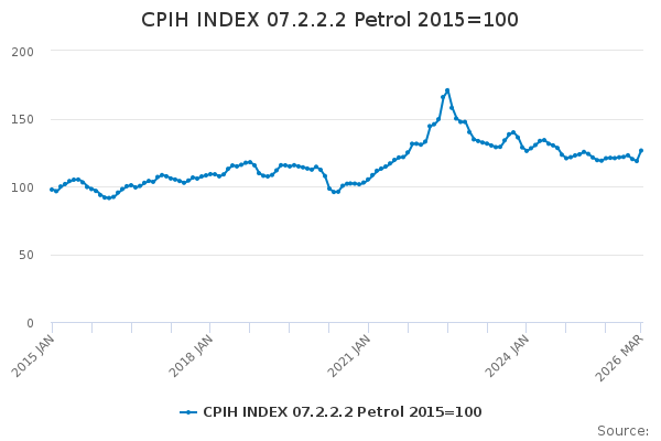Download this time seriesCPIH INDEX 07.2.2.2 Petrol 2015=100