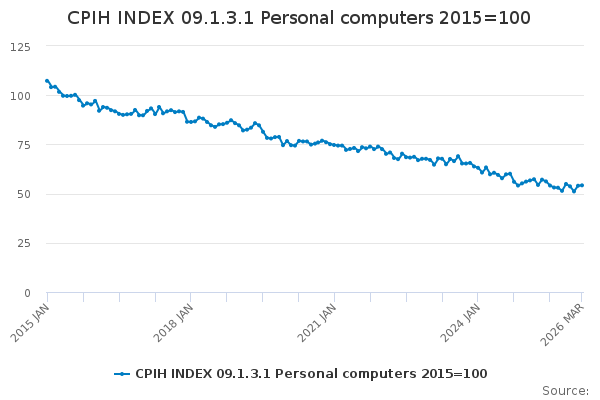 Download this time seriesCPIH INDEX 09.1.3.1 Personal computers 2015=100