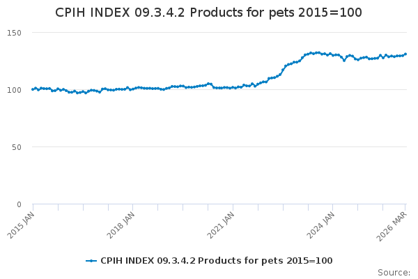 Download this time seriesCPIH INDEX 09.3.4.2 Products for pets 2015=100