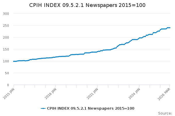 Download this time seriesCPIH INDEX 09.5.2.1 Newspapers 2015=100