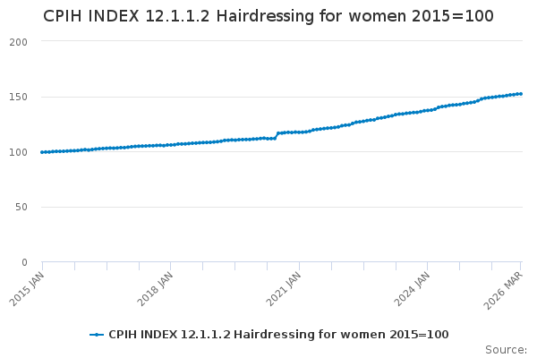 Download this time seriesCPIH INDEX 12.1.1.2 Hairdressing for women 2015=100