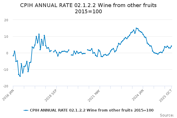Download this time seriesCPIH ANNUAL RATE 02.1.2.2 Wine from other fruits 2015=100