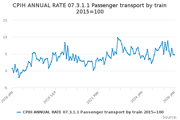 Download this time seriesCPIH ANNUAL RATE 07.3.1.1 Passenger transport by train 2015=100
