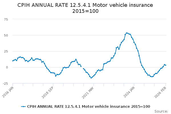 Download this time seriesCPIH ANNUAL RATE 12.5.4.1 Motor vehicle insurance 2015=100