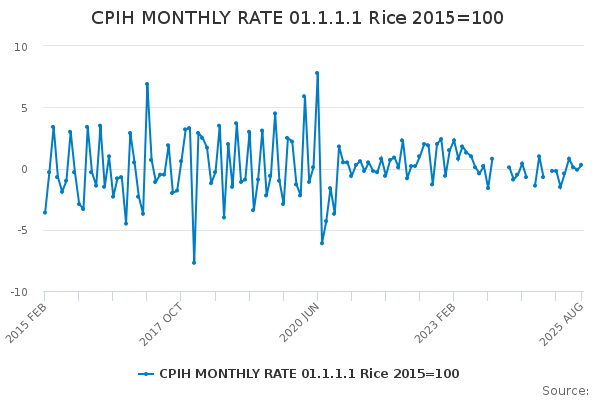 Download this time seriesCPIH MONTHLY RATE 01.1.1.1 Rice 2015=100