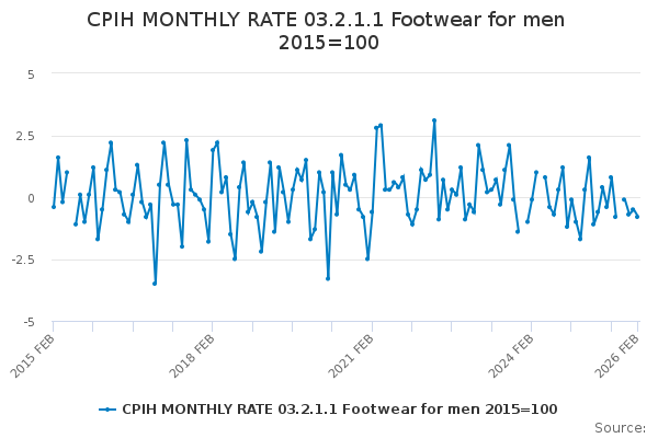 Download this time seriesCPIH MONTHLY RATE 03.2.1.1 Footwear for men 2015=100