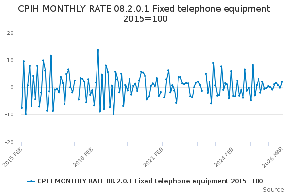 Download this time seriesCPIH MONTHLY RATE 08.2.0.1 Fixed telephone equipment 2015=100