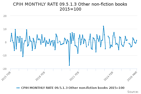 Download this time seriesCPIH MONTHLY RATE 09.5.1.3 Other non-fiction books 2015=100