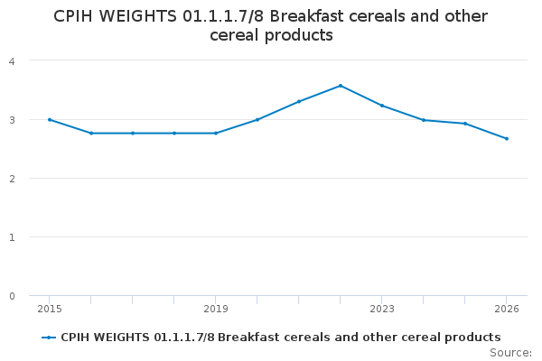 Download this time seriesCPIH WEIGHTS 01.1.1.7/8 Breakfast cereals and other cereal products
