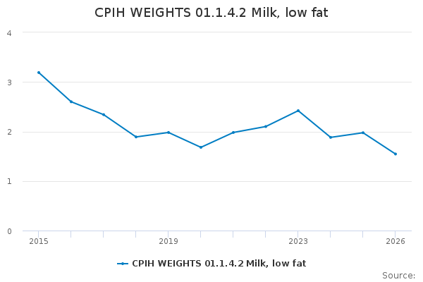 Download this time seriesCPIH WEIGHTS 01.1.4.2 Milk, low fat