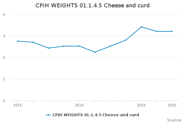 Download this time seriesCPIH WEIGHTS 01.1.4.5 Cheese and curd