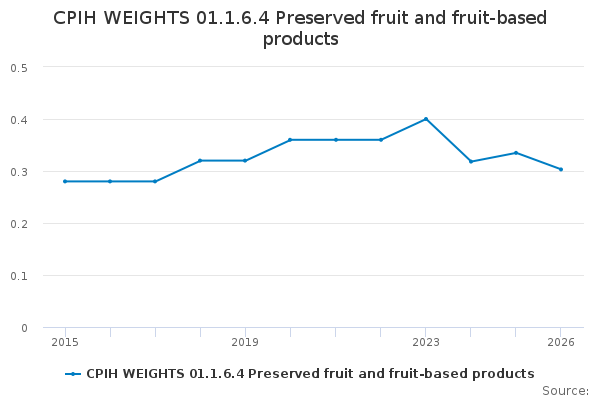 Download this time seriesCPIH WEIGHTS 01.1.6.4 Preserved fruit and fruit-based products