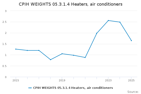 Download this time seriesCPIH WEIGHTS 05.3.1.4 Heaters, air conditioners