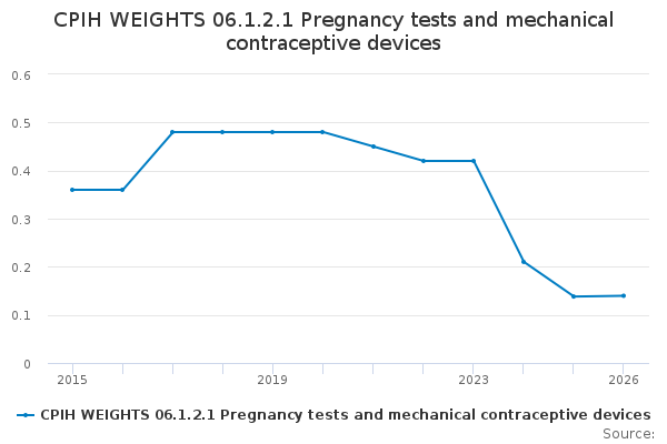 Download this time seriesCPIH WEIGHTS 06.1.2.1 Pregnancy tests and mechanical contraceptive devices
