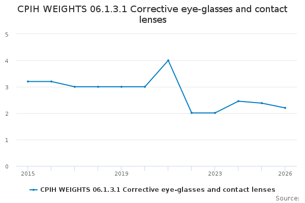Download this time seriesCPIH WEIGHTS 06.1.3.1 Corrective eye-glasses and contact lenses