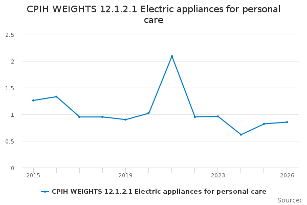 Download this time seriesCPIH WEIGHTS 12.1.2.1 Electric appliances for personal care
