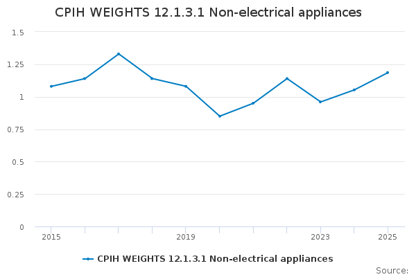 Download this time seriesCPIH WEIGHTS 12.1.3.1 Non-electrical appliances