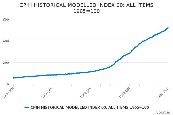 Download this time seriesCPIH HISTORICAL MODELLED INDEX 00: ALL ITEMS 1965=100
