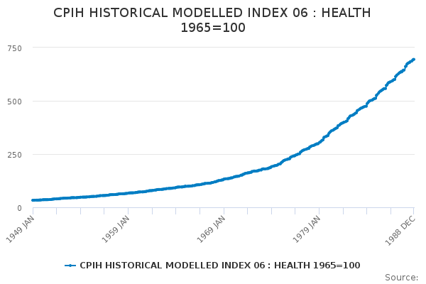 Download this time seriesCPIH HISTORICAL MODELLED INDEX 06 : HEALTH 1965=100
