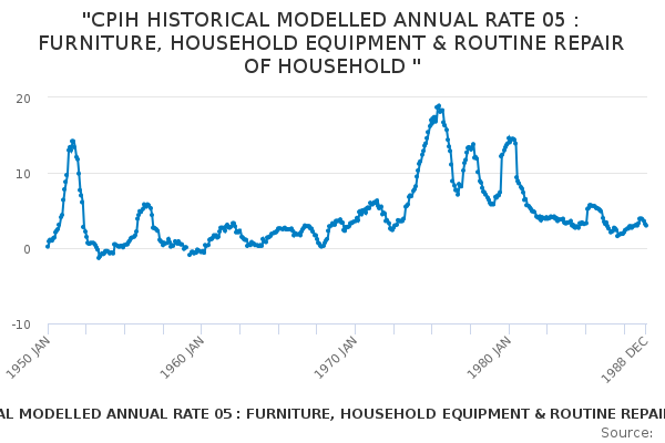 Download this time series"CPIH HISTORICAL MODELLED ANNUAL RATE 05 : FURNITURE, HOUSEHOLD EQUIPMENT & ROUTINE REPAIR OF HOUSEHOLD "