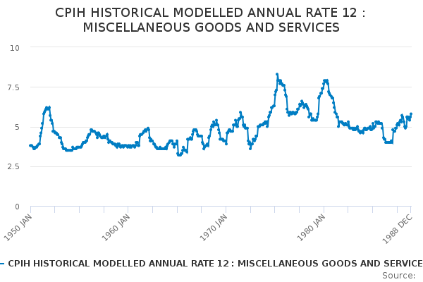 Download this time seriesCPIH HISTORICAL MODELLED ANNUAL RATE 12 : MISCELLANEOUS GOODS AND SERVICES