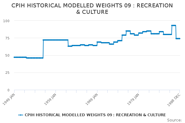 Download this time seriesCPIH HISTORICAL MODELLED WEIGHTS 09 : RECREATION & CULTURE