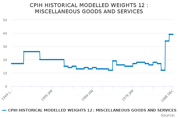 Download this time seriesCPIH HISTORICAL MODELLED WEIGHTS 12 : MISCELLANEOUS GOODS AND SERVICES