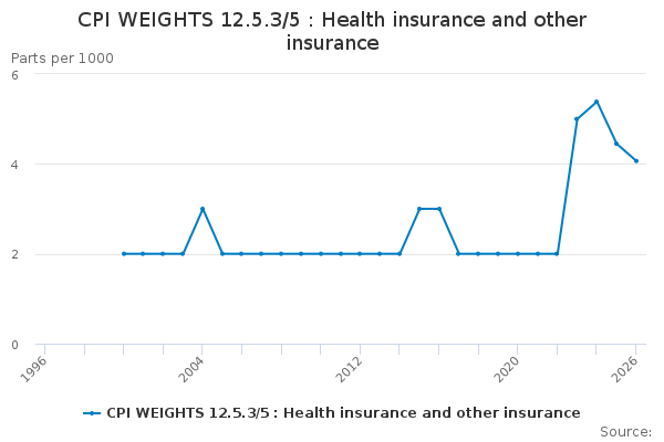 Download this time seriesCPI WEIGHTS 12.5.3/5 : Health insurance and other insurance