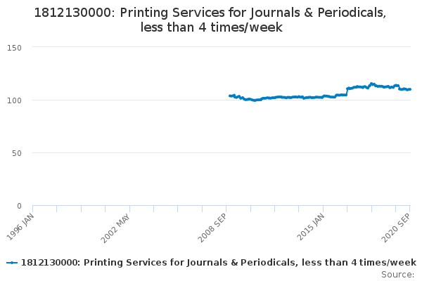 Download this time series1812130000: Printing Services for Journals & Periodicals, less than 4 times/week