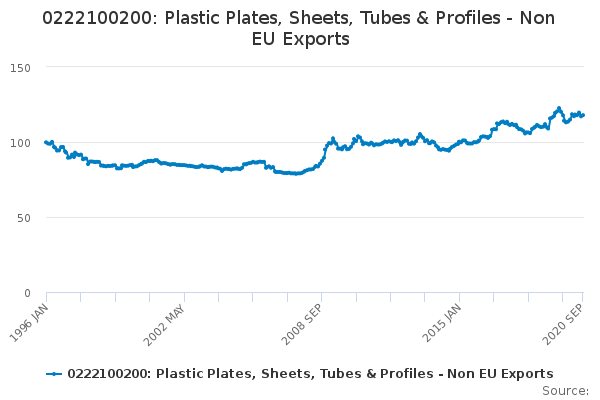 Download this time series0222100200: Plastic Plates, Sheets, Tubes & Profiles - Non EU Exports