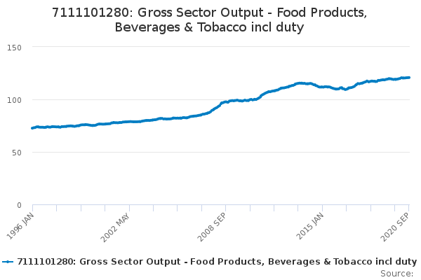 Download this time series7111101280: Gross Sector Output - Food Products, Beverages & Tobacco incl duty