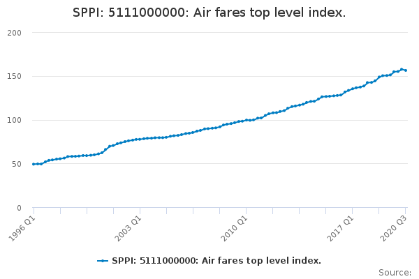Download this time seriesSPPI: 5111000000: Air fares top level index.