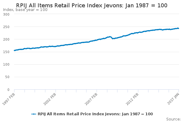 Download this time seriesRPIJ All Items Retail Price Index Jevons: Jan 1987 = 100