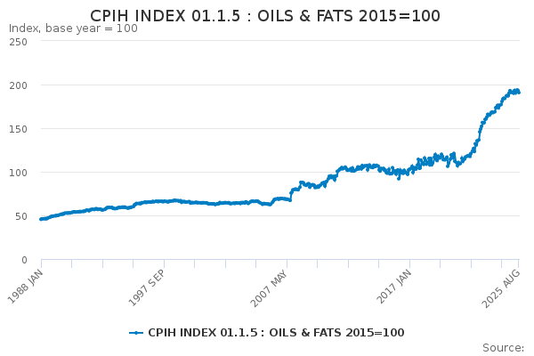 Download this time seriesCPIH INDEX 01.1.5 : OILS & FATS 2015=100