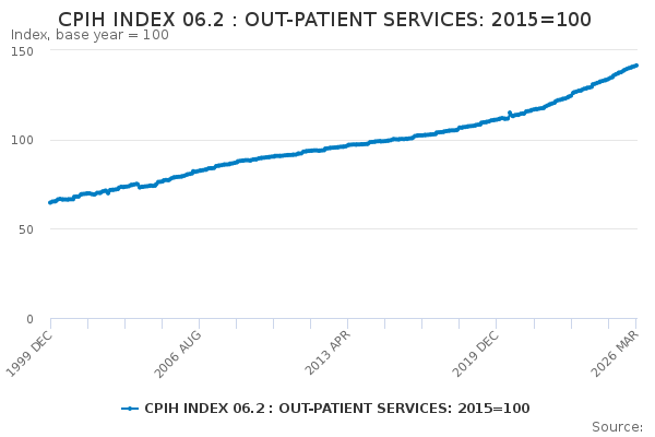 Download this time seriesCPIH INDEX 06.2 : OUT-PATIENT SERVICES: 2015=100