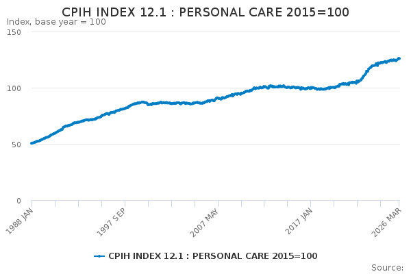 Download this time seriesCPIH INDEX 12.1 : PERSONAL CARE 2015=100