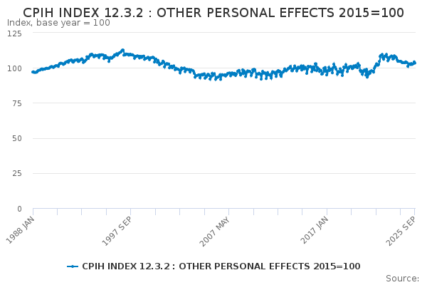 Download this time seriesCPIH INDEX 12.3.2 : OTHER PERSONAL EFFECTS 2015=100