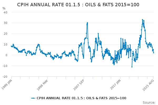 Download this time seriesCPIH ANNUAL RATE 01.1.5 : OILS & FATS 2015=100