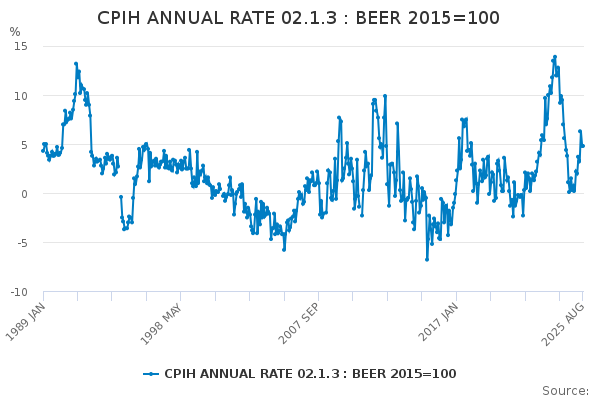 Download this time seriesCPIH ANNUAL RATE 02.1.3 : BEER 2015=100