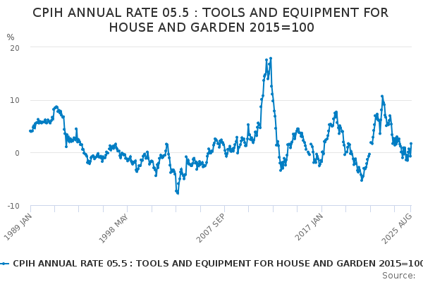 Download this time seriesCPIH ANNUAL RATE 05.5 : TOOLS AND EQUIPMENT FOR HOUSE AND GARDEN 2015=100