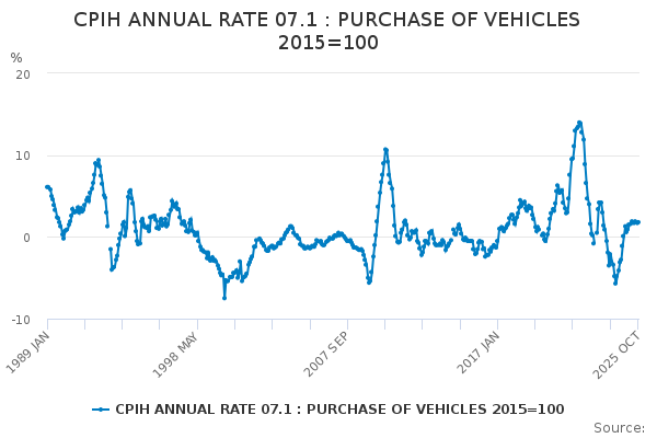 Download this time seriesCPIH ANNUAL RATE 07.1 : PURCHASE OF VEHICLES 2015=100