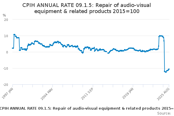 Download this time seriesCPIH ANNUAL RATE 09.1.5: Repair of audio-visual equipment & related products 2015=100