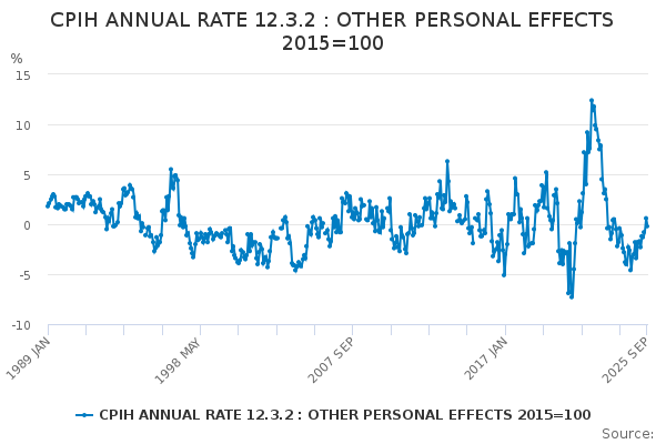 Download this time seriesCPIH ANNUAL RATE 12.3.2 : OTHER PERSONAL EFFECTS 2015=100