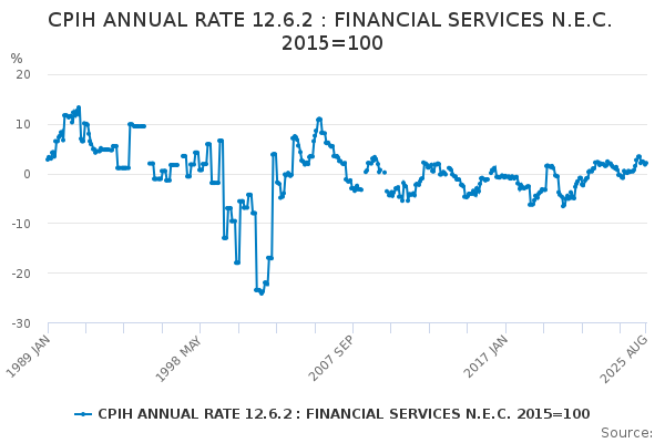 Download this time seriesCPIH ANNUAL RATE 12.6.2 : FINANCIAL SERVICES N.E.C. 2015=100