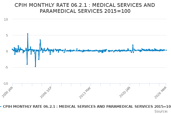 Download this time seriesCPIH MONTHLY RATE 06.2.1 : MEDICAL SERVICES AND PARAMEDICAL SERVICES 2015=100