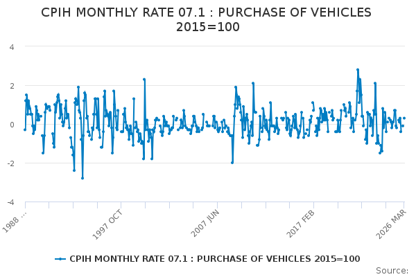Download this time seriesCPIH MONTHLY RATE 07.1 : PURCHASE OF VEHICLES 2015=100