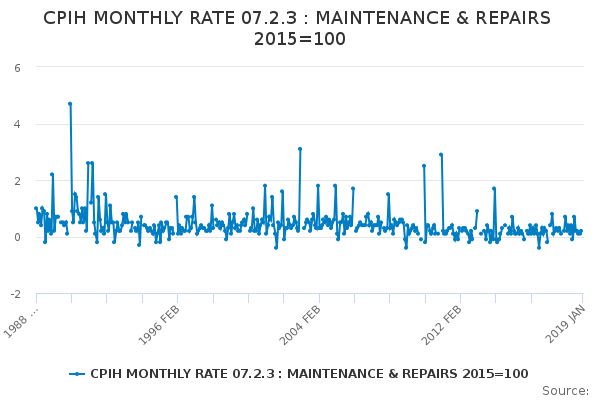Download this time seriesCPIH MONTHLY RATE 07.2.3 : MAINTENANCE & REPAIRS 2015=100